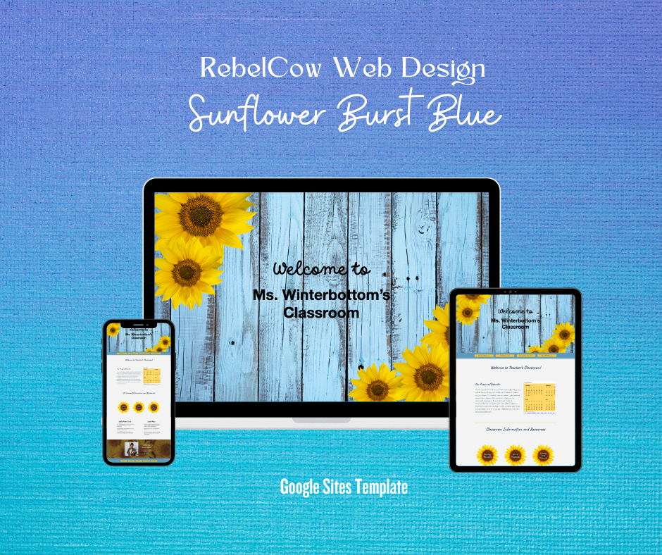 I love sunflowers! I call them "smiling flowers" because every time you look at one you have to smile. That's why I created my Sunflower Burst Blue Google Sites Template. I wanted a new template for my school website that would make me smile each day. My Burst Blue is the first template from my Sunflower Google Sites series.